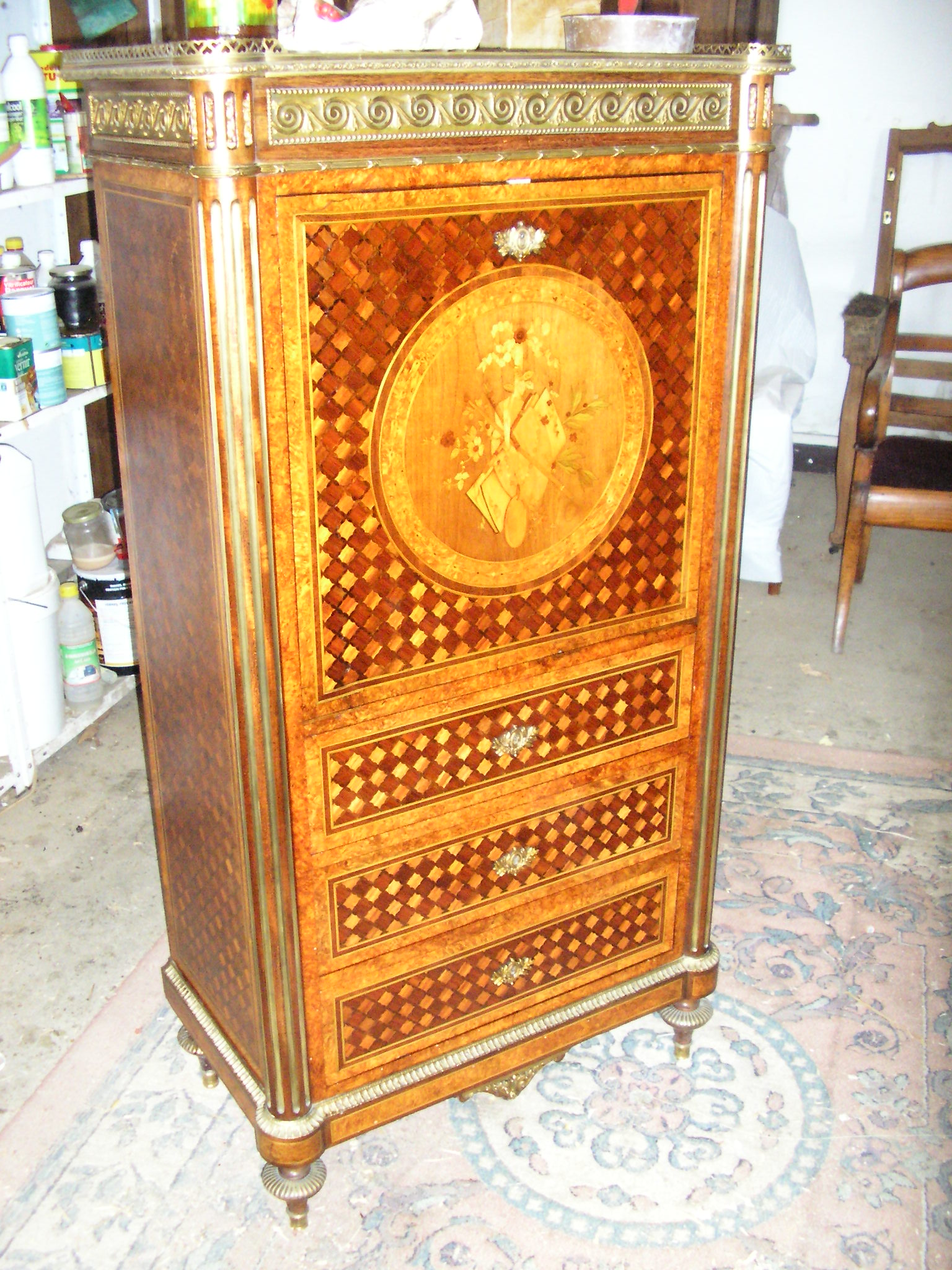 Je restaure tout types de meubles en bois massifs, marquetés ou plaqués dans le respect du meuble ancien, de son style et de la patine du temps.